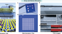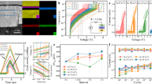 The DC electrical measurements of test cells were performed by using an Agilent 4156C Semiconductor Parameter Analyzer. Pulse measurements for cycling endurance were conducted by an Agilent 81110 A pulse generator and Tektronix oscilloscope (6 GHz). For cycling endurance measurements, an external load resistance was serially connected between the device and the analyser. Uniformity of samples across a 150-mm wafer was measured using DC measurements to cycle respective devices 100 times each (Supplementary Fig. 13).