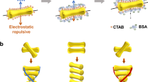 The ultraviolet–visible spectra were measured using a ultraviolet–visible spectrometer (200–1,000 nm) in a quartz cell. The CD spectra were performed on a Bio-Logic MOS-450 CD spectrometer. TEM micrographs were collected on a JEOL-2010 microscope operated at 120 kV. The 3D reconstruction of electron tomography was carried out using a Tecnai Spirit 120 kV TEM. Dynamic light scattering data were obtained using a Malvern Zetasizer ZS instrument with a 632.8 nm laser source and a backscattering detector at 173°. Raman scattering spectra were measured in liquid cell using a LabRam-HR800 Micro-Raman spectrometer with Lab-spec 5.0 software. The slit and pinhole were set at 100 and 400 mm, respectively, an air-cooled He-Ne laser for 632.8 nm excitation with a power of ~8 mW.