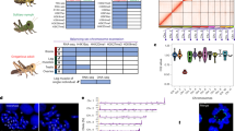 The total heterozygosity rate of the L. migratoria genome, which is the portion of heterozygous single-nucleotide polymorphisms between the two haploid components in the diploid genome, was estimated to be 1.15 × 10−3. We also observed a heterogeneous distribution of heterozygosity rates (Fig. 1a, track b), which possibly resulted from inbreeding18. The possible reasons are the existence of alleles, which are homozygous lethal and the variation of recombination rates between different genomic regions19,20. We assessed the integrity and quality of the genome assembly using multiple evaluation methods (Supplementary Figs S4 and S5, and Supplementary Tables S4–S7). On the basis of these analyses, our assembly provides a good representation of the L. migratoria genome and is of suitable quality for subsequent analysis.