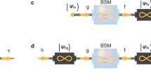 The laser source was a mode-locked ultraviolet laser (Vanguard 355–2500) with a modal diameter of 1 mm, producing pulses of ~10 ps at a repetition rate of 80 MHz. The BBO crystal was cut at 33° to produce collinear, frequency-degenerate down-converted photon pairs at 710 nm. The crystal was tilted to produce near-collinear down-conversion. An interference filter or bandpass filter centred at 710 nm was used to reflect the pump light and transmit the down-converted photon pairs. The variable aperture acted as a spatial filter of the higher-order diffraction modes. The projective measurements were performed by the HoloEye Pluto SLMs (1,080 × 1,920 pixels), which have a resolution of 8 μm per pixel and were calibrated for near-infrared wavelengths. Additional interference filters were placed before the SMFs to select only the photons at 710 nm. Each SMF has a modal radius of 2.3 μm. The Perkin Elmer APDs have a dark count of 200 s−1, which were connected to a coincidence counter with a gating time of 12.5 ns. The back-projection experiment made use of a 705-nm diode (Laser 2000), temperature tuned to 710 nm. The images of the obstructed beams were captured on a CCD camera.