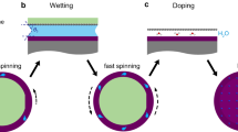 The excellent high-rate performance of the DTG/S nanocomposites is attributed to the extraordinary electrical conductivity and unique mesoporous structure of the DTG. A high electrical conductivity of 438 S cm−1 was determined using the four-probe technique on a DTG disk with a diameter of 13.0 mm and a thickness of ca. 10 μm, which was prepared by compression at 5.0 MPa. After the infiltration of sulphur into the DTG, the electrical conductivity of the DTG/S composites measured by the same method was reduced to 107 S cm−1, which can be ascribed to the unavoidable coverage of the outer surface of the DTG with some amount of elemental sulphur. Electrochemical impedance spectroscopy of the cathode was also performed to further demonstrate the good electrical conductivity of the DTG. Charge transfer resistances of 13.4 Ω and 13.1 Ω were determined for the DTG/S cathode before and after the CV test, respectively (Supplementary Fig. 13 and Supplementary Table 1), which were much lower than those observed when multi-walled CNTs, single-walled CNTs, graphene and polyacrylonitrile-coated graphene were used as the cathode materials31,32,33,34. In addition to its excellent electrical conductivity, DTG’s unique porous structure allows the effective storage of sulphur in the mesosized lamellar interlayer space, which gives rise to an efficient connection between sulphur and graphene and prevents the diffusion of polysulphides into the electrolyte. Consequently, an excellent high-rate performance of the DTG/S cathode with a high capacity and good stability is achieved.
