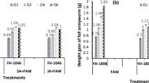 For Y2H assays, the full-length or specific domains of OsCOI1a, OsCOI1b, OsCOI1c, OsJAZ1, osjaz1-1D and OsMYC2 were amplified and cloned into the Y2H vectors pGBKT7 and pGADT7 (Clontech), respectively (primers are described in Supplementary Table 2). Y2H experiments were then carried out following the manual of Matchmaker Gold Yeast Two-Hybrid System (Clontech). Detection of protein–protein interactions between OsJAZ1 and OsCOI1a/OsCOI1b/OsCOI1c were performed in SD/-Trp/-Leu/-His/-Ade medium containing 30 μM JA, MeJA or Coronatine, all of which were dissolved in 1% methanol.