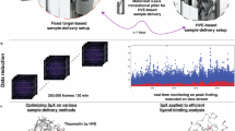 RNAi microsponges were mounted on Si3N4 membrane similar to SPring-8 experiments for single-shot imaging at SACLA. The membranes were mounted into the MAXIC installed at EH3 of SACLA. Individual XFEL pulses, set at 5.5 keV, were focussed to a size of ~1.5 μm via the K-B mirrors33. RNAi microsponges randomly mounted on the membrane were exposed to XFEL pulses by scanning the focused X-ray beams across the membrane window. The resulting diffraction patterns were recorded on a multi-port CCD detector46. The multi-port CCD is assembled with eight sensors to give a 2,048 × 2,048 array with 50 × 50 μm2 size pixels with a 3 × 3-mm2 central aperture passing the direct beam.