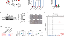 Total RNA was extracted using TRIzol (Life technologies, 15596-026) following the manufacturer’s instruction. Isolated RNA was reverse transcribed using M-MLV (Promega, M1701) following the manufacturer’s instruction. For quantitative PCR, 0.5 μl cDNA was used as template in a 25 μl reaction containing 1 μg oligo dT 15 primers, 0.5 mM dNTPs, RNase inhibitor, M-MLV and M-MLV buffer. All quantitative PCR reactions were carried out on a Roche LightCycler 480 thermocycler (Roche). Fold change of gene expression levels were calculated according to the 2−ΔΔCt method as described previously48 and normalized to GAPDH. Primers for real-time PCR assay are listed in Supplementary Table 1.