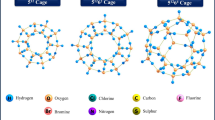DFT was utilized in this work to provide further investigation on the stability of CO clathrate hydrates. The calculations utilized the Gaussian09 program package38. We optimized the structures of (H2O)20 (512 cage in both sI and sII), (H2O)28 (51264 cage in sII) and (H2O)24 (51262 cage in sI and their corresponding CO complexes, at the level of Becke 3-Parameter for exchange and Lee, Yang and Parr parameters for correlation). DFT (B3LYP)/6-31+G(d) was used with the Coulomb-attenuating method39,40,41. All the stationary points were confirmed as minima by means of frequency calculations. To compare with our Rietveld refinement results of CO distributions in sII cages, we performed MD simulations with one CO molecule in each 512 cage and two CO molecules in 51264 cage. A total of ~100,000 points from CO trajectories in 5 ns were projected on the a–b plane, and the cage centres of both 512 and 51264 cages were set as the zero points. The MD calculations were carried out at temperatures ranging from 25 to 260 K in canonical NVT (N-moles, V-volume, and T-temperature) ensembles obtained using the Nosé–Hoover thermostat42,43. The dimensions of the simulation cells and their initial configurations were adopted using the experimental lattice parameters and geometries at corresponding temperatures. Three-dimensional periodic boundary conditions were applied. For the selection of proton configuration, the ‘ice rules’ (Bernal–Fowler ice rules) have been obeyed and the proton configuration with the minimum total dipole moment was selected. The TIP4P water model44 was used to calculate the interaction between H2O molecules. The interactions between CO and H2O molecules were modelled by the summation of electrostatic and Lennard–Jones-type interactions. The parameters were taken from Manesh et al.18, who used them to study the distribution of CO molecules in sI clathrate. The bond length of the CO molecule was fixed at the experimental value, 1.128 Å (ref. 45). The Lennard–Jones parameters are 3.55 and 0.3089, kJ mol−1 for C atoms and 2.95 and 0.5120, kJ mol−1 for O atoms. The partial charges on the C and O atoms of the CO molecule were ±0.0223 in atomic units. The long-range electrostatic interactions were calculated with the Particle-Particle Particle-Mesh method46. The dimensions of the periodic simulation boxes were 34 × 34 × 34 3, which were constructed by 2 × 2 × 2 unit cells. Therefore, the simulation domain included a total of 128 512 cages and 64 51264 cages that incorporated a total of 1,088 water molecules. Each calculation was performed for 5.0 ns simulation time with a 1.0 fs time step. The RDF and spatial density distribution of CO molecules respective to the centre of the corresponding cages were obtained from MD trajectories. All MD simulations in this work were performed using the LAMMPS program suite47.