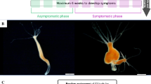 To assess the growth rate we established P. robusta clonal lines of tumour-bearing (n=12) and normal polyps (n=12) by putting one founder polyp per well into a 24-well plate. The polyps were fed daily ad libitum. The number of clonal progeny propagated by budding within each clonal line was counted daily for a period of 4 weeks. To estimate fecundity, tumour-bearing (n=41) and normal (n=39) polyps were kept at 10 °C and deprived of food for 30 days. After this period we counted the number of tumour-bearing and normal polyps that produced eggs. These data were used to generate four-field contingency table and to calculate further odds ratio value for egg production by tumorous polyps compared with control polyps. The statistical significance of fecundity was analysed by Fisher’s exact test.