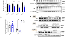 PGC-1α is a master transcription cofactor regulating mitochondrial biogenesis and function that is itself regulated by transcription and extensive posttranslational modifications11,28. Consistent with the dysfunction of the mitochondria, both mRNA and protein levels of PGC-1α are reduced in Wps/Wps BAT before the appearance of the obese phenotype (Fig. 5e,f). The expression of PGC-1α target gene Tfam, a key regulator of mtDNA is also downregulated accordingly (Fig. 5g).