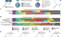 Although phages and the associated kill-the-winner dynamics may result in a loss of correlation between the occurrence patterns of phages and their hosts, we postulate that this process acts at the level of strains, or even sub-strain types diverging only at the level of, for example, their surface proteins. While one bacterial strain may be killed by expansion of a specific cognate phage, closely related bacteria may still be present in those same metagenomes because they will have similar niche preferences. This is also supported by the apparent constant-diversity (also known as Red Queen) dynamics acting on only a few of the ORFs, that is, those that under-recruit reads from public metagenomes and are observed as metaviromic islands50 (Fig. 5).