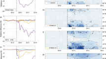 Data used here were from the 0° detector pointing radially outwards along the Earth–satellite direction30,31. We utilize data from L shells spanning 3.0–5.5, equivalent to the geomagnetic latitudes of 55–65° and the locations of the inner and mid parts of the outer radiation belt. The precipitating ECRs measurements are considered the same way as in previous studies using the same data2. The count rates of the >300-keV energy channel are subtracted from those of the >100-keV channel to get an estimate of the flux of precipitating electrons that will deposit the majority of their energy into the atmosphere at altitudes of 70–80 km.
