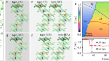 IrTe2 at above Ts~270 K is a metal with a high-symmetry layered trigonal structure. As it is cooled through Ts it undergoes a metal–metal transition to a complex reconstructed 5 × 1 × 5 structure3. This material, when stabilized by alloying or intercalation, is superconducting4,5, suggesting substantial electron–phonon coupling. In the high-temperature trigonal phase (HT), the Ir ions form an equilateral-triangular lattice in the ab plane with edge-sharing IrTe6 octahedra forming layers stacked along the c axis (see Supplementary Fig. 1a). The low-temperature triclinic phase (LT) of IrTe2 has strong aspect of a unidirectional modulated superstructure and also involves rebonding of Te atoms between layers. While the phase transition was initially discussed as a density wave5, more recent studies, including our first-principles calculations discussed below, show that it is not a charge density wave (CDW) but is instead a consequence of competition between Te–Ir, covalent/ionic and Te–Te covalent p-electron bonding6,7,8,9. Both the HT and LT phases of IrTe2 show significant three-dimensional electronic structures reflecting interactions (and in the case of the LT phase, bonding) between adjacent CdI2 structure layers, which is very different from most layered dichalcogenides, which are generally more two dimensional and show real CDW instabilities10. Several scanning tunnelling microscope (STM) studies11,12 have been reported recently on IrTe2, but the relationship between the structural and electronic properties remains to be fully elucidated. In any case, the fact that the transition is associated with Te–Te bonding with interlayer bonds suggests that the surface may favour a different pattern than the bulk leading to a competition. Moreover, a change of the modulation from 1/5 to 1/6 is observed by Se doping9 or the further cooling12, both suggesting that the intrinsic ground state of IrTe2 is a 1/6 modulation.
