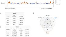 PFGE to see yeast chromosomes was performed using a CHEF DR-III system (Bio-Rad) in a 0.8% (w/v) agarose gel made with 0.5 × TBE buffer and run at 12 °C for 20 h at 6 V cm−1 with an initial switching time of 80 s, a final of 150 s and an angle of 120°. PFGE to resolve better the chromosome XII (Fig. 3b) was performed at 3 V cm−1 for 68 h with 300 and 900 s of initial and final switching time, respectively36. Yeast chromosomes were visualized after staining with ethidium bromide and quantified with the QuantityOne software (Bio-Rad). To specifically visualize the chromosome XII, a Southern blot was carried out by a saline downwards transference onto positively charged membranes (Roche), followed by hybridization with a fluorescein-labelled probe (Roche) that covers both ITS regions within the rDNA unit. Detection was performed by chemiluminescence using an anti-fluorescein antibody coupled to alkaline phosphatase (Roche) and using CDP-star (Roche) as the substrate.