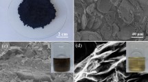 As shown in Fig. 5c,d, the surfaces of the dried GO sub-microspheres are full of folds because the GO sheets shrink inwardly, forming peony-like 3D crumpled structures under the surface tension experienced in the spray-drying process. Such 3D crumpled sub-microsphere morphologies effectively prevent GO stacking, favouring the unfolding of sub-microspheres into plane sheet morphologies when re-dissolved in solvents. The GOFe sub-microsphere powder has a specific surface area of 1,467 m2 g−1, indicating 1–2 atomic layer structures (Supplementary Fig. 7). The dried GOFe powders are highly soluble in water and polar organic solvents. Significantly, our GOFe powder has a very high density (>224 mg cm−3), which facilitates its storage, transport and application. By comparison, despite a very low density (<30 mg cm−3) resulting from the freeze-drying process, the undissolved commercial GO powders have a very low specific surface area (<10 m2 g−1) due to their multilayer structure (Supplementary Fig. 8).