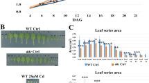 An MSH1 carboxyl-terminal fragment was cloned into pFGC1008 vector and transformed using Agrobacterium into Col-0 by floral dipping to obtain MSH1 RNAi lines. Plants surviving Hygromycin (35 μg ml−1) selection were genotyped for transgene presence using forward (5′-AAGCAACGCGTAAACTCGAC-3′) and reverse (5′-GGCGGTAAGGATCTGAGCTA-3′) primers. T1 plants were self-pollinated and msh1 RNAi-null segregants showing the dwarf phenotype were selected for crossing. Col-0 was pollinated by msh1 RNAi-null segregants to get F1 plants that were subsequently self-pollinated to give epi-F2 and later epiF3 lines (Supplementary Fig. 2). In addition, third-generation msh1 T-DNA mutants coming from normal-looking generation-one and generation-two mutants were used to pollinate Col-0. Five normal-looking, five variegated and five dwarfed third-generation mutants were used in total. Derived F1 progeny were self-pollinated to produce F2 lines that were subsequently analysed for enhanced growth. A Col-0 line derived from a single Col-0 plant was used for crossing and was grown together with F1 and F2 progeny for comparison.