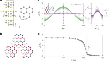 where x and y refer to the axes along which the piezo stack induces biaxial strain, indicated in Fig. 1a and following the description given in previous work19. For each temperature, five voltage cycles were performed. Voltage applied to the piezo stack was increased/decreased in a stepwise manner. The time delay between steps was varied from 0.25 to 2 s with no change in the measured elastoresistance, indicating the absence of any appreciable heating effects. Data shown in all figures were taken using a delay of 0.5 s. The strain was measured using mutually perpendicular strain gauges glued to the back surface of the piezo stack.