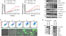 RIPK3 activity was assessed using mouse dermal fibroblasts (MDFs), treated with a cocktail of tumour necrosis factor (TNF), Smac-mimetic compound A (cA) and the pan-caspase inhibitor Q-VD-OPh. This treatment induces necroptosis that is dependent on the kinase activities of RIPK1 and RIPK3 and the pseudokinase mixed lineage kinase domain-like (MLKL)33,34,35. While the RIPK1 inhibitor Necrostatin-1 significantly reduced necroptosis, neither WEHI-345 nor WEHI-540 had any effect on cell death, ruling out activity of WEHI-345 against RIPK1, RIPK3 or MLKL (Supplementary Fig. 1d) at 500 nM.