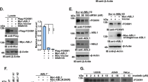 Transfection of MSCV-based retroviral constructs encoding BCR-ABL1(p210)-IRES-Neo, Cre-ERT2-Puro, ERT2-Puro, Cre-GFP, Luciferase-GFP, CD90-FOXO3a(AAA; D.A. Fruman, University of California Irvine, Irvine, CA) and empty vector controls were performed using Lipofectamine 2000 (Invitrogen) with Opti-MEM media (Invitrogen). Retroviral supernatant was produced by co-transfecting HEK 293FT cells with the plasmids pHIT123 (ecotropic env) and pHIT60 (gag-pol). 293FT cells were cultured in high glucose Dulbecco’s modified Eagle’s medium (Invitrogen) with GlutaMAX containing 10% FBS, 100 IU ml−1 penicillin, 100 μg ml−1 streptomycin, 25 mM HEPES, 1 mM sodium pyruvate and 0.1 mM non-essential amino acids. Regular media were replaced after 16 h with growth media containing 10 mM sodium butyrate. After 8 h of incubation, the medium was changed back to regular growth medium. Twenty-four hours later, the virus-containing supernatants were harvested, filtered through a 0.45-μm filter and loaded by centrifugation (2,000g, 90 min at 32 °C) on 50 μg ml−1 RetroNectin (Takara, Madison, WI) coated non-tissue culture six-well plates (Costar). Approximately 2 × 106 cells were added to each well and centrifuged for 20 min at 600g, and subsequently maintained at 37 °C at 5% CO2 for 48 h before harvest. For nuclear translocation of oestrogen receptor fusion proteins, 4-OHT was added at a concentration of 500 nM.
