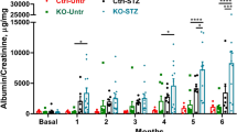 The day before blood sample collection and tissue preparation individual mice were placed in metabolic cages for 24 h and urine samples were collected. We determined urine albumin using a mouse albumin ELISA according to the manufacturer’s instructions and urine creatinine using a modified version of the Jaffe method using a commercially available assay (X-Pand automated platform, Siemens, Eschborn, Germany)21,51.