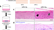 The use of discarded human foreskin, cervical and vaginal KC tissues to develop cell lines for these studies was approved by the institutional review board at the Pennsylvania State University College of Medicine and by the institutional review board at Pinnacle Health Hospitals. The Medical Ethical Committee of the Leiden University Medical Center approved the human tissue sections (healthy foreskin, healthy cervix and HPV16- or 18-positive cervical neoplasias) used for staining. All sections and cell lines were derived from discarded tissues and de-identified, therefore no informed consent was necessary.