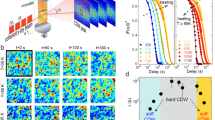 Figure 1 shows a schematic of the experimental setup: 70 fs full-width at half-maximum 9.5 keV (λ=1.3 Å) X-ray pulses generated at the Linac Coherent Light Source23 pass through a timing monitor to record the relative arrival time between pump and probe24, before diffracting from a photoexcited 100-nm-thick layer of nanocrystals deposited with random orientation on a thin SiN membrane in transmission geometry (see Methods section). Also shown in Fig. 1 are raw diffraction patterns from CdS nanorods as recorded on an area detector. Figure 2 shows sample X-ray diffraction patterns for both 3.4 nm diameter CdSe spheres and 4.5 × 18 nm CdS rods recorded before and 500 fs after excitation by above-bandgap 400 nm wavelength optical pulses with a laser fluence of 0.4 J cm−2 (Supplementary Note 1). The first seven allowed peaks of the hexagonal wurtzite structure are collected for both morphologies, with the sharp (002) reflection for the rod samples indicating that the long axis of the nanorod corresponds to the c axis of the hexagonal unit cell25. The orientations for all measured lattice planes/reflections are shown as well in Fig. 2. For both the spherical and rod samples, changes in the diffraction intensity, associated with disordering processes, are superimposed on homogeneous shifts of the diffraction peaks to lower Q (=4π sinθ/λ, where 2θ is the scattering angle shown in Fig. 2c.
