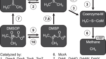 We noted that Pseudomonas deceptionensis M1T, a new species isolated from Antarctic marine sediment17, produced DMS from minimal media containing magnesium sulphate as the only sulphur source (Table 1). P. deceptionensis M1T does not synthesize DMSP, nor does it catabolize DMSP with its genome lacking any known genes for DMSP catabolism3,8. Therefore, P. deceptionensis M1T has a novel DMSP-independent DMS production pathway.