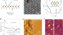Density functional theory calculations were carried out with the PAW method as implemented in the VASP software package28,29, using the PBE exchange-correlation functional30. The defects were modelled in periodically repeated 10 × 10 supercells of the primitive trigonal lattice with the sheets separated by 16 Å of vacuum. A single k-point was used for BZ integration and the plane-wave basis set cutoff was 300 eV. For a few selected structures, the supercell size was increased to 14 × 14 and the energy cutoff increased to 400 eV, which produced an error of at most 0.1 eV, which is our estimated numerical accuracy. Calculations for ideal boundaries were carried out in the ribbon geometry with five MX2 units on each side of the boundary and with fully chalcogen passivated edge structures, as shown in Fig. 4d. Twelve k-points along the ribbon were found to yield converged results. Robustness of the magnetization was checked by performing additional calculations with 24 k-points and of varying the smearing parameter. The results for MoSe2 look very similar to the WSe2 results.