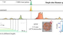 The TICO-Raman concept is sketched in Fig. 1a–c. Two laser light sources, a Raman pump and a Raman probe laser, are focused onto the sample. A photodiode detects the probe power behind the sample (Fig. 1c). The pump laser operates at a fixed wavelength, whereas the probe light is repeatedly swept in wavelength over time (Fig. 1a). Therefore, the photon energy difference between the two lasers is changed periodically. Every time the difference matches a Raman transition of a sample molecule (Fig. 1b), pump photons will be converted to probe photons by SRS (Fig. 1c). Hence, the intensity of the probe laser at that specific spectral position gets increased by stimulated Raman gain (SRG). With the known time to wavelength encoding of the probe laser sweep, the SRG signals can be mapped to a Raman spectrum (see also Supplementary Fig. 3).