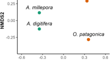 Skeleton microstructure (for example, crystal morphology) was examined in three colonies from each treatment at the end of daytime and night time periods by SEM as described previously in Tambutté et al.45. In brief, the soft tissues were removed with NaClO 10%, rinsed with distilled water then oven-dried. All samples were coated with gold and observed at 5 kV in a JEOL JSM-6010LV. Analysis of skeleton microstructure was carried out in one experimental trial.