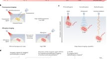 The sensitivity of PET is superior to many other imaging modalities, but it is still limited by the low resolution partially due to the partial volume effects29,30,31. For small tumour lesion with the size smaller or close to its spatial resolution, the underestimation of radiotracer uptake becomes significant. The high superficial resolution of optical imaging, the signal enhancement effect and the better signal-to-background ratio empowered REFI to detect small subcutaneous tumour lesions more effectively. Our 4T1-luc2 xenograft study indicated that REFI was able to detect tumour lesions with the size <2 mm, which were <3 days after tumour transplanting in nude mice. This suggested a great potential of applying REFI for highly sensitive early tumour detection and tumour metastasis imaging, even with passive delivery of the nanoparticle. Different from bioluminescence imaging, REFI does not require incorporation of immunogenic proteins32,33, such as luciferase and GFP (green fluorescent protein). It thus can be applied to a wider range of animal tumour models and holds better clinical translation potential.
