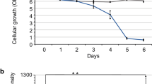 The microfluidic mold was fabricated using standard soft lithography techniques as described16. To make the chip, we mixed polydimethylsiloxane (PDMS; Sylgard 184) and curing agent in a 10:1 ratio, degassed it with a vacuum pump for 30 min and poured it into the mold. The PDMS was cured by baking at 70 °C for 5 h and then was carefully removed from the mold. A biopsy puncher (1.5 mm, Harris Unicore) was used to create holes for medium flow. The surfaces of PDMS and a glass coverslip (24 × 50 mm) were surface-activated using a plasma cleaner (Diener Electronic, Germany) to covalently bond the two elements. For injection of cells into the device, synthetic complete medium containing 2% glucose (SD) was filtered using a 0.22-μm polyethersulfone filter (Corning) and loaded into the device using a peristaltic pump (IPCN, Ismatec). Cells from a log-phase culture (0.5 OD600) were gently injected into the device using a 1-ml syringe. A constant medium flow (28 μl min−1) was maintained throughout the experiment. Control experiments validating the flow rate, medium diffusion into the cavities, nutrient uptake and physiological cell growth were performed as previously described16. For experiments with strains expressing the TetO2-TLC1 construct, cells were allowed to divide and invade the cavities for 12–24 h before the medium was switched to SD containing 30 μg ml−1 doxycycline. For experiments with the est2-D670A mutant strain (yT639), a clone without the plasmid complementing EST2 deficiency (pVL291 encoding EST2 with a URA3 marker) was selected. Because selection required 20–30 cell divisions, the telomeres were elongated by ethanol treatment before the experiments (see above, Supplementary Figs 2 and 7a). To select a single clone, cells were plated on YPD for 24 h and individual colonies were picked and grown on selecting medium (SD-uracil) to verify plasmid loss (the frequency of spontaneous loss was 5–8%). After an additional 24 h, a colony without plasmid was precultured overnight in SD medium and injected into the microfluidic device as described above. An aliquot of the same culture was analysed using Southern blot analysis to measure telomere length (Supplementary Fig. 7a).