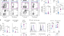 Group sizes were estimated according to a presumed s.d. and an expected type one error of <0.05. Depending on the initial results, the sample size in subsequent experiments was adjusted accordingly. Within all figures, each data point reflects results from a single mouse unless otherwise indicated; in in vitro co-culture experiments each data point represents a technical replicate. Statistical analysis was performed using GraphPad Prism software. For comparison of unmatched two groups, the unpaired Student’s t-test was used. For comparison between three or more groups one-way ANOVA followed by Bonferroni’s post test was used unless otherwise specified in the figure legend. All data are presented as mean or mean±s.d. and P<0.05 are considered as significant. In all figures, *P<0.05; **P<0.01; ***P<0.001; NS, not significant.