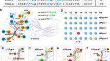 To further characterize how these phosphopeptides interact with specific phosphate-binding sites of β-arrestin-1, we selectively mutated the negatively charged residues of these phosphopeptides to alanine and tested their effects on clathrin or SRC recruitment in vitro. Two mutations of GRK6pp and three mutations of GRK2pp affected phosphopeptide-induced β-arrestin-1/SRC or β-arrestin-1/clathrin interaction, respectively (Supplementary Figs 14 and 15). Importantly, the mutation of pS355 in GRK6pp selectively eliminated the upfield chemical shift at the Y63-F2Y position, whereas the mutation of E369A specifically abolished the upfield chemical shift at the R7-F2Y position after phosphopeptide binding (Fig. 4c). Therefore, the pS355 of GRK6pp interacts with phosphate-binding site 1 and E369 interacts with phosphate-binding site 5 in the phosphate-binding concave surface of β-arrestin-1 (Fig. 4d and Supplementary Table 7). Similarly, 19F-NMR spectroscopy with selective GRK2pp mutations indicated that pT360, E373 and E379/D380 specifically interact with phosphate-binding sites 1, 4 and 6/7, respectively (Fig. 4e,f).