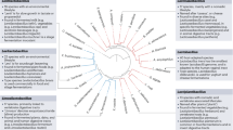 Biotransformation of carbohydrates by bacteria can be exploited for transforming raw materials, for optimizing growth and for producing valuable metabolites. The 213 genomes collectively encode 48 of the 133 families of glycoside hydrolases (GHs) in the CAZy database (http://www.cazy.org), many of which represent unrecognized and unexploited enzymes for biotechnology (Fig. 3). Chitin is the second most abundant natural polysaccharide after cellulose. Among 115 LAB species previously tested, only Carnobacterium spp. were able to hydrolyse α chitin25. In this study, three new Carnobacterium genomes, along with strains of L. delbrueckii, L. nasuensis, L. agilis, L. fabifermentans and Pediococus, provide the genetic information to exploit that activity. The GH39 genes are β-xylosidases that are present in the L. rapi/L. kisonensis branch as well as two singleton species, L. concavus and L. secaliphilus. GH49 (dextranase) and GH95 (α-fucosidase) are harboured only in the L. harbinensis/L. perolens branch with GH49 being absent from the latter species. Dextranases are considered to be the most efficient means for hydrolysing undesirable dextrans at sugar mills26. Microbial mannanases hydrolyse complex plant polysaccharides and they have applications in the paper and pulp industry, for food and feed technology, coffee extraction, oil drilling and detergent production; the corresponding GH76 is found only in the two L. acidipiscis strains. GH101 is found only in L. brantae, isolated from goose faeces, and L. perolens, which is from a beverage production environment. This GH is an endo-α-N-acetylgalactosaminidase, which is thought to play a role in the degradation and utilization of mucins by probiotic bifidobacteria27. Although this explains its presence in the goose intestine, its association with beverage production may be due to limited hygiene.