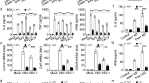 To study the role of ICE in RAW 264.7 and NIH3T3 cells, we used a CRISPR/Cas9 lentiviral system to deliver Cas9 and gRNA (Supplementary Fig. 2c). Using this system, we had to screen 200 RAW 264.7 clones to get one RAW 264.7 clone with monoallelic deletion of ICE (Supplementary Fig. 2d). This low efficiency of recombination in RAW 264.7 cells does not favour the use of transient transfection for CRISPR/Cas9-mediated deletion of ICE, transient transfection efficiency in RAW 264.7 being 15% compared with 90% using the lentiviral system. RAW 264.7 and NIH3T3 clones bearing this deletion on one allele (termed RAW ICE+/− and NIH3T3 ICE+/−, respectively; Supplementary Fig. 2d) were analysed for Ifnb1 expression after LPS or poly(I:C) activation. In LPS-activated RAW WT cells, Ifnb1 mRNA levels increased during the first 4 h and then gradually decreased (Supplementary Fig. 2e). In contrast, whereas Ifnb1 mRNA levels increased comparably in RAW ICE+/− cells, they subsequently remained stable (Fig. 2f and Supplementary Fig. 2e). In NIH3T3 WT and ICE+/− cells activated with poly(I:C), kinetics of Ifnb1 mRNA levels were similar (Fig. 2g and Supplementary Fig. 2f). These results indicate that ICE plays a role in the negative regulation of Ifnb1 expression at late stages of LPS activation in RAW cells.