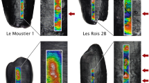 High-resolution replicas of the facial skeleton of the Devil’s Tower Neanderthal child were made by one of us (P.O.) using Exaflex impression material (GC America, Chicago, IL, USA). Positive replicas were prepared using Devcon 5-minute Epoxy (ITW Devcon, Danvers, MA, USA). Spur-coated positive replicas were examined by an EVO 50 SEM (Carl Zeiss, Thornwood, NY, USA) in variable pressure secondary electron emission mode (15 kV accelerating voltage, 200 pA current, 9–12 mm working distance, 100 Pa pressure). For La Quina 18, we used a portable confocal scanning optical microscope (PCSOM) as described elsewhere32. In cases where one side was better preserved than the other, the obtained information was mirrored on both sides. For the SH sample two microscopes were used in this study: PCSOM, and an environmental SEM. The SEM was housed at the Laboratory for Human Evolution at the University of Burgos whereas the PCSOM generally housed at NYU was brought to Spain for onsite use. Specimens were studied first hand by direct imaging of bone surfaces and of the microanatomy of bone immediately below the surface to a depth of ca. 50 μm. Field widths provided by the PCSOM ranged from ca. 500 μm (5 × lens) to 230 μm (10 × lens).