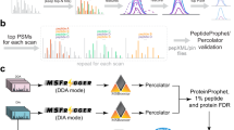 Keller, A., Nesvizhskii, A.I., Kolker, E. & Aebersold, R. Empirical statistical model to estimate the accuracy of peptide identifications made by MS/MS and database search. Anal. Chem. 74, 5383–5392 (2002).