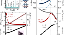 Identifying the lines of anomalies for T < T∗ as phase boundaries is uncontroversial, because they are associated with hysteresis. The case for a second-order ‘cap’ linking the tricritical points at (±H⋆, T⋆), however, needs to be examined carefully and resembles the situation in Sr3Ru2O7 at high magnetic field. There, proof of a broken-symmetry state (as opposed to metamagnetic transition lines ending in critical endpoints) came from thermal expansion and thermodynamic data30. In NbFe2, further to earlier heat capacity measurements on polycrystals17, strong support for the interpretation of the anomalies at TN as phase transition anomalies is provided by the thermal expansion measurements (Fig. 1b) and by the recent direct observation of the SDW order in neutron scattering27, as well as indirect evidence from electron spin resonance and muon spin rotation26.