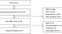 Ferreira, N. D. et al. Incidence and predictors of permanent pacemaker requirement after transcatheter aortic valve implantation with a self-expanding bioprosthesis. Pacing Clin. Electrophysiol. 33, 1364–1372 (2010).