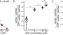 Hochstadt-Ozer, J. & Cashel, M. The regulation of purine utilization in bacteria. V. Inhibition of purine phosphoribosyltransferase activities and purine uptake in isolated membrane vesicles by guanosine tetra-phosphate. J. Biol. Chem. 247, 7067–7072 (1972).