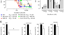 Cen D, Gonzalez RI, Buckmeier JA, Kahlon RS, Tohidian NB, Meyskens FL Jr. . Disulfiram induces apoptosis in human melanoma cells: a redox-related process. Mol Cancer Ther 2002; 1: 197–204.