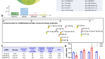 The intracellular NO levels were measured in situ in endothelial cells using DAF-FM as previously described21. HUVECs were treated with TNF-α (10 ng/mL) for 24 h and incubated with 5 μM DAF-FM diacetate for 30 min in a CO2 incubator. After washing, the intracellular NO levels were determined from the fluorescence intensity of the DAF-FM/NO adduct by confocal microscopy at excitation/emission wavelengths of 495/515 nm. The level of NO2−, as a stable oxidized product of NO, was also determined in the culture supernatants via the Griess reaction23. Medium alone without cells was used as the negative control. Cells were collected after gentle detachment with 5 mM EDTA, and the cell protein levels were measured according to the Lowry method. To obtain the endothelial cell-derived NO level, the NO2− level in media alone was subtracted from the total NO2− value. NO2- data were expressed as nmoles/mg of cell protein. To evaluate cGMP production, HASMCs (2 × 105 cells) or mouse de-endothelialized aortic rings were transfected with or without miRNAs and stimulated with TNF-α (10 ng/mL for HASMCs and 20 ng/mL for aortic rings) for another 24 h, followed by incubation with or without 100 μM of S-nitroso-N-acetylpenicillamine (SNAP) or diethylenetriamine diazeniumdiolate (DETA/NO) for 24 h. For co-culture experiments, HASMCs (1 × 105 cells) were transfected with or without miRNAs and co-cultured with HUVECs (1 × 105 cells) in 6-well plates for 24 h. The cGMP concentrations were measured in the aortic ring lysates and conditioned media using an ELISA kit. The protein concentration was determined by a BCA method in total lysates obtained from cells and aortic rings.