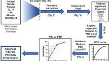 All quantification methods were detailed in our previous study21. Briefly, the QPLEXTM kit utilized Quantamatrix’s multiplex diagnostics platform (QMAP; Quantamatrix Inc., Seoul, Republic of Korea)29. First, human plasma samples (singular) were diluted in diluent buffer and incubated with the coded beads and biotin-conjugated detection antibodies (angiotensin-converting enzyme, ACE, DY929, R&D Systems, Minneapolis, USA; galectin-3 binding protein, LGALS3BP, DY2226, R&D Systems; periostin, POSTN, DY3548B, R&D Systems; Aβ1−40, 014-26923, Wako, Japan). The immunocomplexes were washed twice with washing buffer at a Biotek-510 magnetic wash station (Biotek, VT, USA). Diluted R-phycoerythrin-conjugated streptavidin was added to each well. After three washes, the immunocomplexes were resuspended in 100 μl of washing buffer by tapping and automatically analyzed using the QMAPTM system. The intra/interassay coefficients of variation and limits of detection were as follows: ACE, intra: 4.9%, inter: 5.1%, 0.22 ng/ml; LGALS3BP, intra: 1.1%, inter: 5.7%, 0.04 ng/ml; POSTN, intra: 9.0%, inter: 6.0%, 0.034 ng/ml; and Aβ1−40, intra: 5.3%, inter: 3.9%, 0.50 pM.
