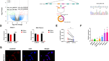 To explore crucial circRNAs in hypoxia-induced pancreatic cancer cells, high RNA-seq was performed in hypoxia-cultured and normal cultured pancreatic cancer cells (MIA PaCa-2). After screening, there were 26 upregulated and 22 downregulated circRNAs (fold change > 2.0 and P < 0.05) in total (Fig. 1a). GO (Gene Ontology) analysis for these upregulated circRNAs/mRNAs demonstrated that they were mainly associated with the energy metabolic process (Fig. 1b). To further verify the RNA-Seq results, qRT–PCR was performed to measure the expression of the top ten upregulated circRNAs in hypoxia-cultured MIA PaCa-2 cells compared with normal cultured cells. In agreement with the RNA-Seq results, hsa_circ_0006719, hsa_circ_0002483, hsa_circ_0007843, hsa_circ_0105820, hsa_circ_0001346, and hsa_circ_0117799 were significantly increased under hypoxia (Supplementary Fig. 1a). As hsa_circ_0001346 was the most upregulated circRNA, we selected it for further study. Hsa_circ_0001346, spliced from the RNF13 gene, was located at chr3:149,563,797–149,639,014 and formed by the head-to-tail splicing of exon 2 and exon 8 (Fig. 1c). To detect the circular characteristics of circRNF13, convergent primers and divergent primers were designed. PCR results showed that divergent primers could only amplify products from cDNA but not from gDNA in MIA PaCa-2 cells (Fig. 1d). Sanger sequencing confirmed the back-spliced junction of circRNF13 (Fig. 1e). RNase R is a highly processive 3′ to 5′ exoribonuclease that can digest linear RNAs22. Our results showed that circRNF13 could resist RNase R digestion, while the linear form of RNF13 was dramatically decreased (Fig. 1f), indicating that circRNF13 consisted of a loop structure. Subsequently, nuclear-cytoplasmic fractionation and FISH assays showed that circRNF13 was mainly detected in the cytoplasm (Fig. 1g, h). These results demonstrate that circRNF13 is a circular RNA that is localized predominantly in the cytoplasm.