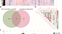 DNB molecules are considered to be functionally important biomarkers of this critical phase. We found that many known osteoporosis-associated genes reported in previous studies were identified by the DNB method (Fig. 3d), suggesting the potential power of DNBs for seeking biomarkers for osteoporosis. GO analysis of DNB genes revealed that processes related to inflammatory responses and tight junction organization were strongly enriched (Supplementary Fig. 1a). The KEGG pathway enrichment analysis also revealed the involvement of immune-associated pathways and MAPK signaling pathways in osteoporosis as functional DNB members (Supplementary Fig. 1b). Collectively, these findings suggested that the contribution of DNB genes to osteoporosis is, at least in part, due to the dysregulated expression of genes involved in the cascades required for osteoporosis.
