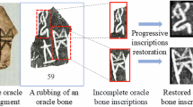 Matching images that depict the same scene or object are commonly based on sparse local features, which consist of key points along with their corresponding descriptors representing the local appearance. Learning-based descriptors, such as SuperPoint24, often combine point detection and the description of the interest. Deep learning-based matchers, such as SuperGlue25, are deep networks trained to perform joint matching of local features and outlier rejection given a pair of input images. SuperGlue operates on key points equipped with descriptors using a sparse matching network. Recent advances like DeDoDe26 propose detector-free methods that leverage dense networks to extract local features. For complex structural matching tasks, methods combining fine-grained feature association with the Hungarian algorithm27,28,29 have shown efficacy in establishing robust correspondences under ambiguities. Homologous rubbings of oracle bone fragments inherently contain a sufficient amount of approximate local features. Wu et al. employed a deep neural network-based feature extractor called “Diviner” for homologous rubbings retrieval (https://www.xianqin.org/blog/archives/17264.html). However, deep feature extractors typically focus on the texture features of the rubbings. Different versions of the same oracle bone inscription are often produced by different rubbers, leading to variations in image texture due to different rubbing techniques. Additionally, since the materials of oracle bones are primarily turtle shells or animal bones, the use of the same material results in similar texture features across different rubbings. Therefore, to achieve a more efficient comparison of oracle bone fragments, models need to possess an understanding of the information conveyed by the rubbings.