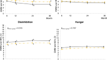 Eating style was assessed using the Three Factor Eating Questionnaire (TFEQ)-R18 [22, 23]. The TFEQ measures Cognitive Restraint (six items e.g., ‘I deliberately take small helpings as a means of controlling my weight.’), Disinhibited Eating (nine items e.g., ‘Sometimes when I start eating, I just can’t seem to stop’), and Emotional Eating (3 items e.g., ‘When I feel lonely, I console myself by eating.’). Participants were asked to rate their response on a four-item scale ranging from 1 ‘Definitely False’ to 4 ‘Definitely True’. We focused on disinhibited eating, as this dimension most reliably differs according to age and BMI [24]. Importantly, the factor structure of the TFEQ has been replicated across older and younger samples [23]. The internal consistency was moderate for the Cognitive Restraint subscale (Cronbach α = 0.67), high for the Disinhibited Eating subscale (Cronbach α = 0.89), and high for the Emotional Eating subscale (Cronbach α = 0.84).