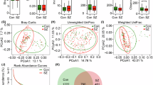 We estimated the community diversity for all of the samples to compare their complexity among reticular OLP, erosive OLP, and healthy individuals. Significantly lower richness and alpha diversity were observed for the fungal communities in the erosive OLP group compared with the healthy subjects (P < 0.05; Fig. 1a, b). The same trend was also observed between the reticular OLP and healthy control samples, but no significant difference was detected (P > 0.05; Fig. 1a, b). Rarefaction analyses indicated that fungal species richness and alpha diversity among the three groups gradually decreased as the disease was aggravated (Fig. 1c, d), which was in contrast to the tendency of the bacteriome (Table S1).1