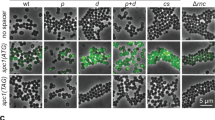 Cells were subjected to confocal analysis following a published protocol with modifications.52 For living bacterial cell staining, 100 μl cells were washed three times in PBS and loaded on silane-coated glass slides with Cytospin 4 centrifugation (Thermo Fisher Scientific). Cells were stained with SYTO 9 (Molecular Probes catalogue number T13320, diluted 600 times in PBS) for chromosomes at room temperature for 30 min, followed by one-minute staining on ice with FM 4–64 (Molecular Probes, catalogue number S34854, dissolved in 10% glycerol-PBS with 1.25 mg/ml of 1,4-diazabicyclo (2,2,2) octane) for membranes. The images of the stained samples were observed with laser scanning confocal microscopy (TCS SP8; Leica).