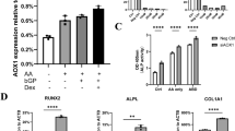 Escherichia coli LPS (1 μg·mL−1) was added to cells to stimulate an inflammatory microenvironment.31 alkaline phosphatase (ALP) and alizarin red S (ARS) staining assays were conducted to detect any osteogenic differentiation changes. Quantitative real-time PCR (qRT-PCR) and western blotting (WB) were performed to observe the osteogenesis-related gene and protein expression in hPDLCs. The results demonstrated that ALP and ARS staining were darker in both the Ad-hBD3 and Ad-hBD3+LPS groups (Fig. 2a, b). The mRNA and protein expression levels of ALP, Runx2 and COL1 were upregulated in the Ad-hBD3 and Ad-hBD3+LPS groups compared with those in the empty vector (NC) group (Fig. 2c, d). There were no significant differences between the Ad-hBD3 and Ad-hBD3+LPS groups.