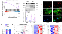 HDPSCs were isolated from donors aged 16 to 70 years. The isolated and cultured HDPSCs exhibited high expression of Mesenchymal Stem Cell (MSC) markers, including CD73, CD90, CD29, CD44, and CD146. Additionally, these cells demonstrated the ability to differentiate into osteogenic, adipogenic and chondrogenic lineages (Fig. S1a–d). A proteomic analysis was conducted on HDPSC samples isolated from subjects of various ages to identify proteins that vary with age. A heatmap from the proteomic analysis showed that the expression of cell cycle-related genes, such as PCNA, MCM6, MCM3, CDK17, CDK12, MCM5, MBD3, BCL2L12, and CACYBP decreased with increasing age (Fig. 1a). Immunofluorescence staining for γH2AX in young (Y)-HDPSCs and old (O)-HDPSCs revealed that γH2AX expression increased with age (Figs. 1b and c). A heatmap of the proteomic analysis indicated a decline in the expression of Nups, particularly a significant downregulation of NUP62 expression (Fig. 1d). The results showed that the NUP62 expression was decreased with age (Fig. 1e). Western blot analysis and RT‒PCR also supported these findings (Fig. 1f, g and fig. S2a). The top 20 genes identified in the proteomic analysis were presented in Fig. S3a. Additionally, the expression of senescence-associated genes (P16 and P21) and senescence-associated secretory phenotype (SASP) genes (interleukin-6 and interleukin-8) increased with age (Fig. S3b). Our studies showed that both the proliferation and osteogenic differentiation capacity of HDPSCs decreased with age, while the percentage of cells positively stained for senescence-associated beta-galactosidase (SA β-gal) increased with age (Fig. S3c–f). Immunofluorescence staining further validated the age-related decrease in NUP62 expression (Fig. 1h, i). Following the induction of replicative senescence in HDPSCs through cell passaging, Western blot and RT‒PCR analyses demonstrated that the expression level of NUP62 decreased with an increasing number of HDPSC passages (Fig. S2b–d). As expected, the mRNA levels of P16 and P21 were found to be elevated (Fig. S2d). These results suggested that NUP62 expression was correlated with HDPSC senescence, indicating that NUP62 may play a critical role in regulating the senescence of HDPSCs.
