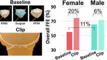 Although a partial replication was noted in data from Volunteer 2, one limitation of the current study is that to provide a controlled point of reference, most of the data showing the incremental effect of beard hair length on FFE of the five face masks tested and exercise bands were collected by repeated cycles of beard growth and fit testing of a single individual. Therefore, the findings may not completely capture the role of interindividual factors such as differences in facial morphology, beard density, and hair texture. Additional studies are needed to investigate the potential effect of these variables on face mask fitting and the potential interaction with beard hair. Higher overall FFE for bearded subjects wearing N95 respirators (Table 1 and Supplementary Fig. 1), relative to Volunteer 1, may be a function of the specific mask model tested, and/or characteristics of an individual’s face and facial hair. Additional testing with different shapes, styles, and material rigidities of N95 respirators (e.g., horizontal shape with fold out flaps, cup shape, cone shape, duckbill) in a broader sample of volunteers would help to address the factors contributing to variability reported here and observed by others [6, 10,11,12]. Similarly, results we report here show the efficiency of face masks worn as personal protective equipment. The extent to which these findings are predictive of the performance of face masks as source control, specifically in reducing the emission of SARS-CoV-2 aerosols, is not known at present and is a focus of ongoing investigation. Finally, despite standardized procedures, individual differences in proficiency of mask fit testing can add variability to observed results.